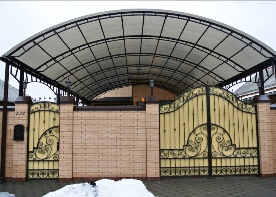 Прочитайте какие бывают и как выбрать навес из металла а так же от чего зависит цена дровницы и какие бывают кованые ворота