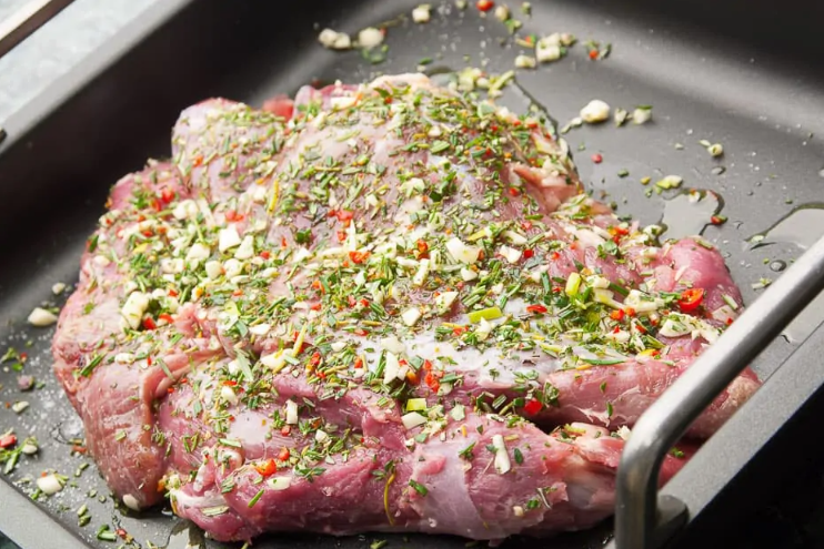 А для телятины маринад с травами и маринад с лаймом. Баранина обычно хорошо сочетается с чесноком , оливковым маслом и травами , такими как: розмарин , тимьян , майоран и лимонной цедрой. Маринад с лаймом, маринад с травами и маринад для барбекю с паприкой и медом особенно подходят для свинины, такой как отбивные, стейки из свиной шеи или свиной шеи, свиного филе или популярных свиных ребрышек. Свинина должна быть максимально свежей, хранение и «выдержка» свинине не нужны.