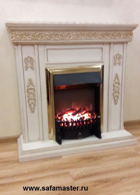 Фото в интерьере нашего клиента: Каминокомплект Alex Bauman Ekaterina белый шоколад с очагом Fobos Brass