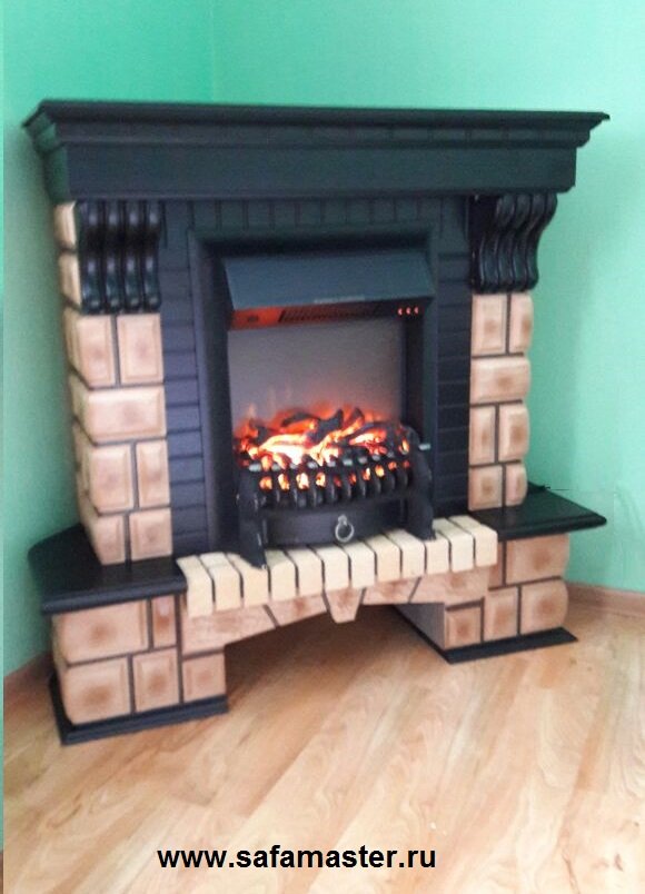 Фото в интерьере нашего клиента: Угловой каминокомплект Меркурий Stone S венге с очагом Fobos black