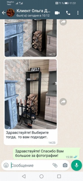 Заказала дровницу кованную. Отличное качество. Красивая, приятный дизайн. Доставка аккуратная. Благодарю!