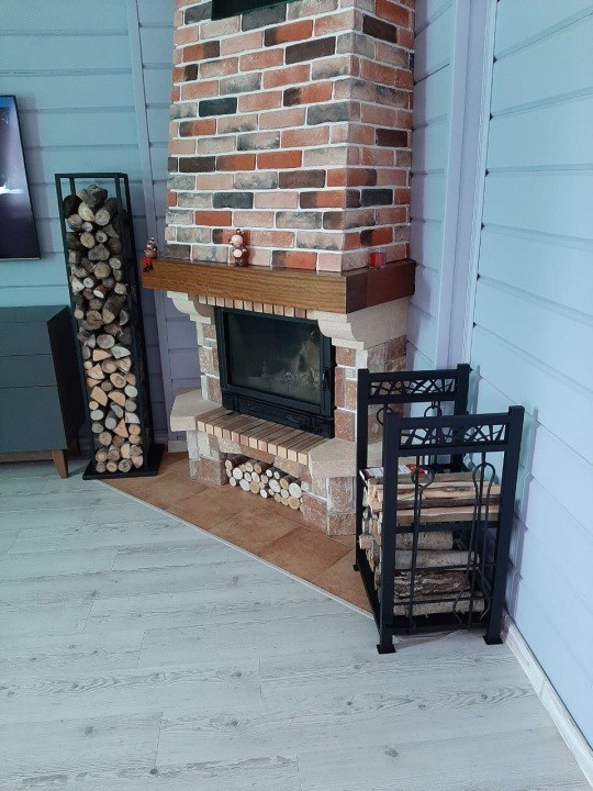 Очень красивая и удобная дровница. Набор подошёл по дизайну.
