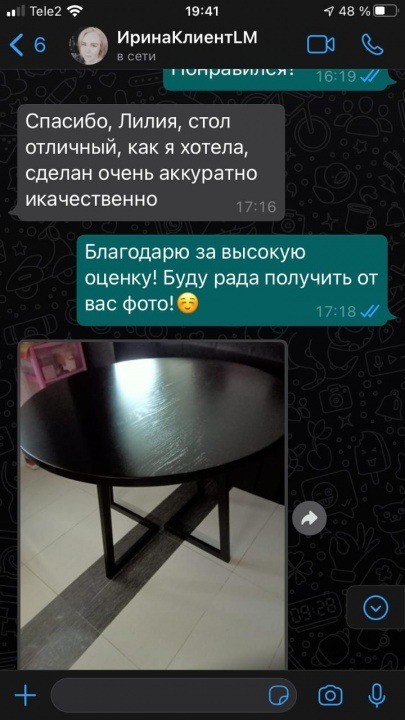 Мне сделали прекрасный стол из дуба, именно такой,как я и заказала.В каталоге нашла понравившуюся модель, дала свои пожелания и размеры.Я очень довольна результатом.