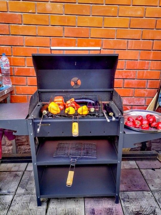Пришёл в срок Гриль-мангал FAMILY STANDART BBQ , верхняя часть с крышкой уже была собрана, осталось привинтить только боковые стойки и ножки. Все винты в комплекте. Много полок, все под рукой, крышка помогает сохранить сочность мяса.