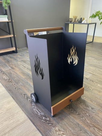 Дровница — ёмкость для хранения дров для камина или печи. Выполнена в чёрном цвете. Имеет колёсики для удобного перемещения. В нижней части предусмотрен ящик для хранения спичек, перчаток и других материалов для розжига камина.