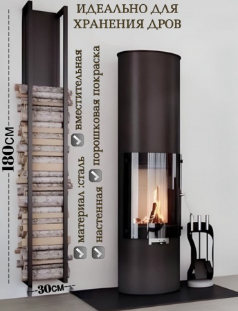 Конструкция стеллажа позволяет складывать в него широкие дрова, поэтому для бани подходит идеально. Хорошо подойдет к стилям лофт, хай-тек, минимализм и любому современному дизайну.