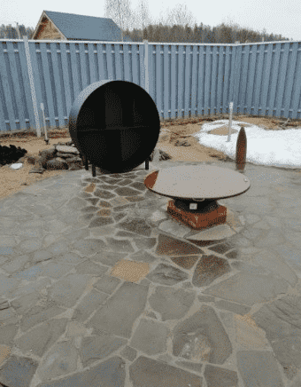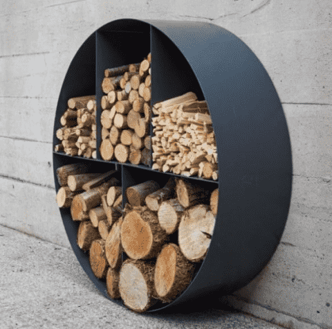 Оригинальная уличная круглая дровница впишется в большинство современных пространств и станет украшением вашего участка. Стиль этой дровницы можно можно определить как лофт или хай-тек. Любители просты и функциональности оценят данное оригинальное изделие.