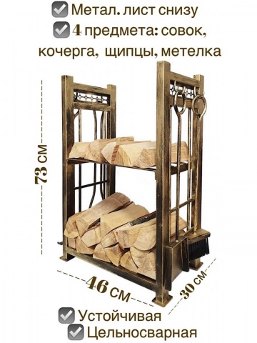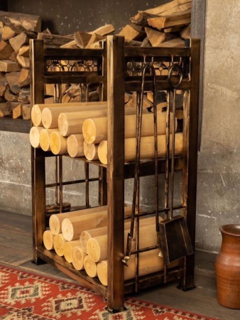 Дровница с каминным набором в стиле лофт – SafaMaster FT200-1, бронза