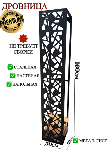 Дровница настенная , напольная, конструкция сварная и не требует сборки, благодаря чему ни одна деталь не потеряется при доставке, а кроме того, это продляет ее прочность и долговечность.