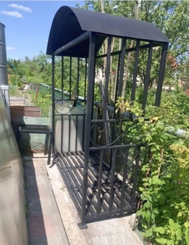 Боковые стенки сделаны из профиля 40х40, задняя стенка из сетки 50 х 50, крыша из металла. Большая, вместительная, но при этом недорогая дровница, украшенная на боку ковкой. Длина по фасаду: 220 см, глубина: 90 см, высота высота: 235 см. Крышу можем сделать прямую или выгнутую. Обычно в наличии, если нет, то изготовим за 3-4 рабочих дня.