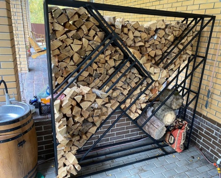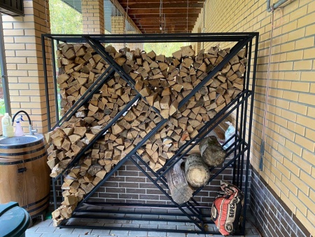 Конструкция: Укреплена ребрами жесткости, которые также служат разделителями для дров.