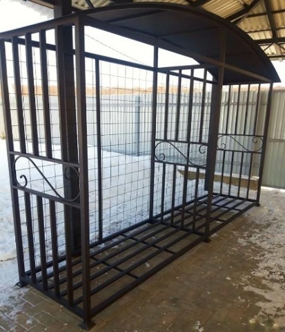 Сделана металлопрофиля 40х40, задняя стенка из сетки с ячейкой 50 х 50, окрашена импортной краской 3 в 1 с защитой от ржавчины.