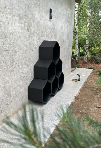 Конструкция выполненная из прочного металла обеспечивает надежность и долговечность использования. Эта уличная дровница не только хранит дрова в безопасности, но и становится настоящим объектом искусства. Ее форма, напоминающая пчелиную соту, притягивает внимание и создает необычный акцент в любом экстерьере. Эта модель идеально сочетает в себе функциональность и эстетическую привлекательность. Благодаря своей оригинальной форме и стильному исполнению, она станет прекрасным дополнением для вашего сада или двора.