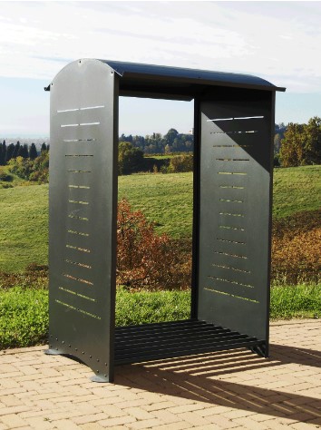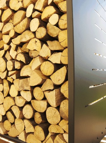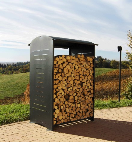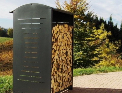 На стенках этой уличной дровницы вырезан рисунок лазерной резкой, лазерная резка делает рисунок, о который нельзя пораниться. Может сделать дополнительные конструктивные элементы