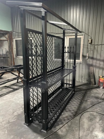 Дровник премиум качества, изготовлен из лучшего металла + еще ковка сама по себе улучшает характеристики металла, сверху антикороозинйое покрытие(цинкогрунт), потом наносится порошковая краска. После этого конструкция запекается в печи при высокой температуре. Так же нанесена патина, цвет патины можем изменить. Так же ка и дровника. Большая высокая конструкция, ширина 2500, высота 2000, глубина 500, но сделаем по вашим размерам.