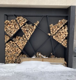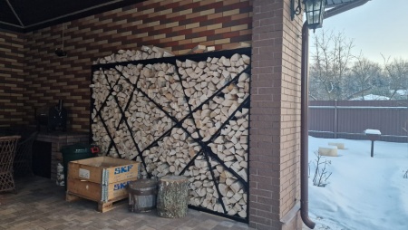 Внутренняя часть дровника оснащена металлической профильной трубой 20-го размера, а внешний контур – 40-м профилем. Это обеспечивает прочность и надежность конструкции, позволяя хранить различные виды дров или дрова с разной влажностью. Ребра жесткости, укрепляющие конструкцию, также служат разделителями для дров, обеспечивая порядок и удобство использования.