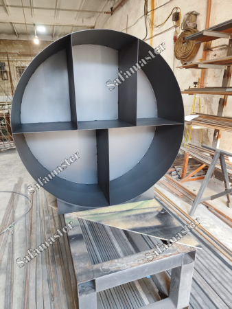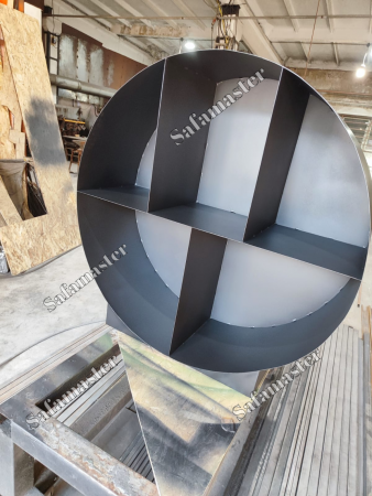 Круглый уличный большой дровник для дров и щепок. Дровник из металла для дачи круглый настенный уличный для дров «SafaMaster 46» . Его можно прикрепить к стене внизу или выше(если позволит вес конструкции и плотность стены). Дровник полностью металлическая, включая заднюю стенку. Сверху окрашена специальной порошковой краской для уличных изделий, которая держится очень долго. Дровник имеет несколько ребер жесткости, они служат и разделителями для дров и щепок. Можно удобно разложить дрова по типам или размеру.