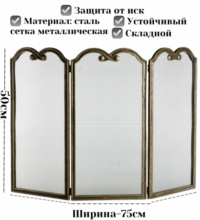 Экран декоративный для защиты от искр с 3 створками 131303 сделан из латуни итальянской фирмой Stilars. Stilars-известный европейский бренд стильных каминных аксессуаров.