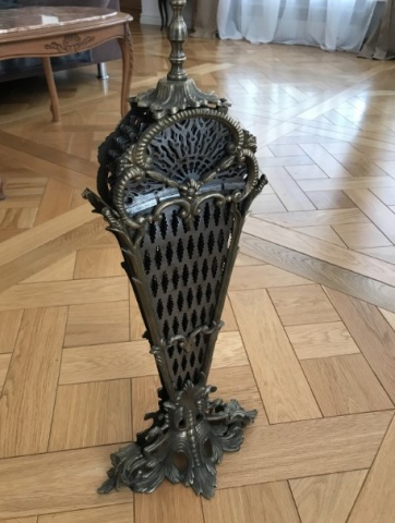 Он действительно похож на раскрытый веер. Или на павлина, широко раскрывшего хвост. Имеет классическое литое блестящее основание. Которое при близком рассмотрении похоже на механизм часов. Основа: мелкая прочная сетка. Цвет: античная латунь.