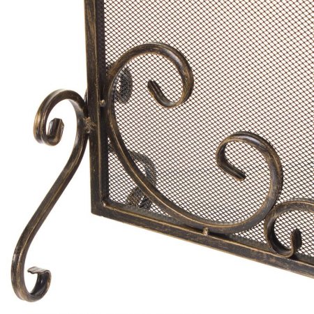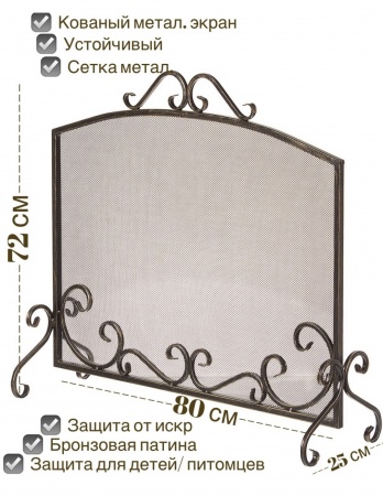 Стильный декоративный экран для камина защитный S610 кованый в бронзовом цвете сделан чтобы защитить ваш дом от искр, пепла и украсить интерьер. Создан в нашем ковочном цехе вручную. Основа- прочная металлическая тканая сетка, по бокам ковка с кованым украшением. Порошковая краска. После окраски наша продукция запекается в печи с повышенной температурой, чтобы краска припеклась и экран служил как можно дольше. Такой каминный экран прослужит десятилетия и долго будет радовать вас изысканными формами и украшением.