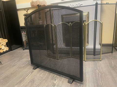 Кованный защитный экран для камина размером 690x690 мм выполнен в черном цвете. Устойчивые ножки глубиной 130 мм обеспечивают надежную фиксацию.