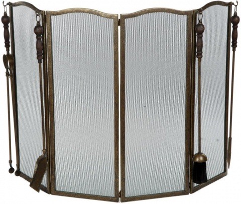 Экран защитный 4 створки с каминным набором из 4 аксессуаров 131899, Италия, латунь