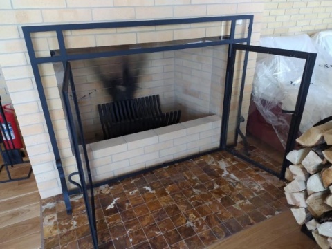 Большой стеклянный экран для камина, фото изготовленного крана. Можем сделать вам по вашим размерам. Импортное закаленное стекло, холодная ковка. Большая тяжелая модель, изготавливается под заказ. Так же сделан кованый колосник в эту печь. Так же делается по размеру. Ширина ножек рассчитывается исходя из размера экрана, веса и вашего помещения