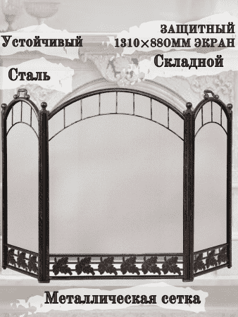 Защитный экрана для камина 31206AGK большой, украшенный металлическими листьями. 3 секции. Плотный материал + интересное оформление. Створки легко регулируются и вы можете поставить экран как вам удобно. экрана для камина вы полностью можете защитить дом от иск и поставить его как вам удобно.