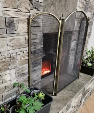 Простой и недорогой каминный экран C03026AB с легким классическим акцентом сверху в виде украшений и плавной линии. Большой, имеет 3 секции. Которые легко регулируются благодаря хорошим поворотным механизмам. Модель бронзового цвета. Имеет небольшие ручки сверху, которые можно принять за украшение. Небольшие устойчивые ножки, средний вес, материал: сталь.