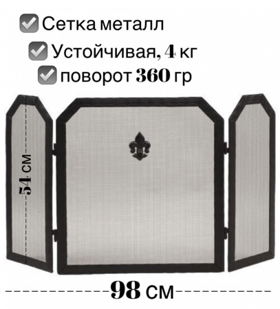 Экран трехстворчатый предназначен для защиты от искр. Используется для мангалов, печей, каминов. Каркас металл. Внутри сетка металлическая.
