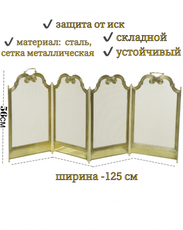 Изящный экран для камина 4 створки F-099.01, латунь, украсит любой современный и полуклассический интерьер. Экран сделан в Италии. Кроме защиты отлично украсит интерьер. Экран создан итальянской фирмы Stilars из желтой латуни и выглядит довольно стильно. Модель выполнена в виде четырехстворчатого зеркала. Легко раскладывается и так же легко складывается и убирается.
