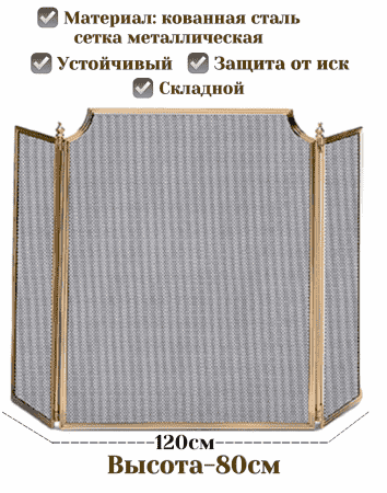 Литые латунные украшения. Экран устойчивый, большой, стильный. Легко впишется в классический и современный интерьер. И надежно защитит дом от искр, пепла. А детей и животных от ожогов.