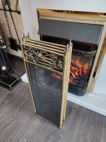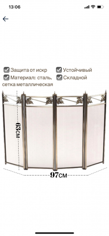 Этот экран для камина из металла украсит классический и полуклассический интерьер и защитит дом от искр и пепла.