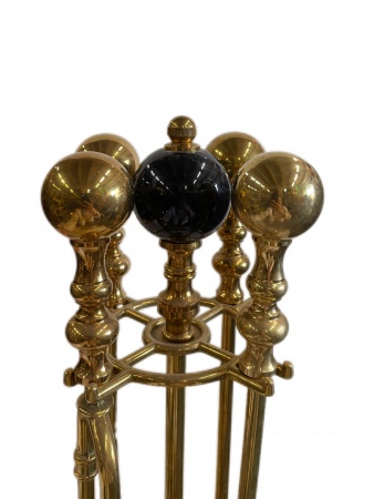 Каминный мраморный набор, 4 предмета, блестящая латунь, черный мрамор, 1193LMN, Италия