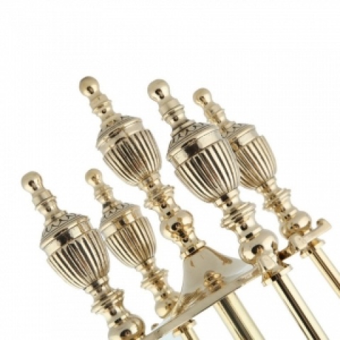 Латунь ценится за то, что по цвету и функциям похожа на драгоценные металлы, в этом случае золото. Аксессуары для камина расположены на высокой стойке. Легко вставляются и быстро вынимаются. Имеют длинные ручки и удобные эргономичные держатели. Поэтому убирать или печь и камин будет очень удобно. Этот классический набор для камина украсит любой классический и полуклассический интерьер. И станет изюминкой каминной зоны.