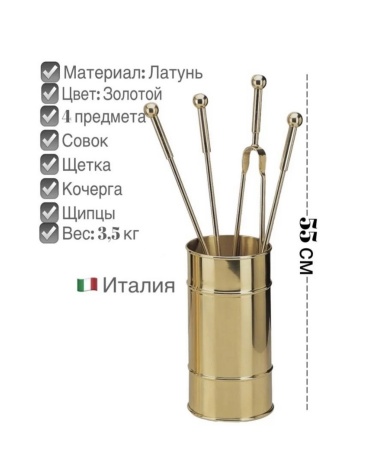 Комплектация: ведро и 4 предмета (совок, кочерга, щетка, щипцы)