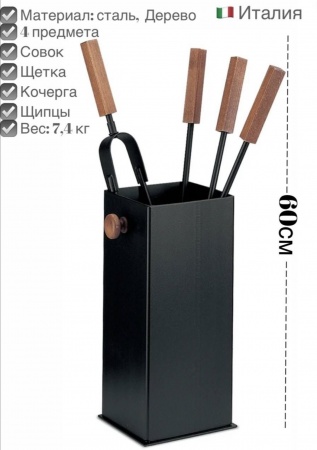 В комплектацию входит: ведро, совок, щипцы, метёлка, кочерга
