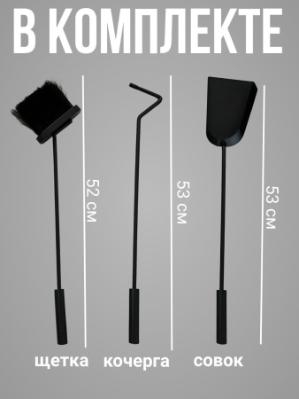 Данный набор металлических инструментов предназначен специально для камина, позволяя эффективно ухаживать за ним и поддерживать чистоту. Это идеальный выбор среди аксессуаров для камина, обеспечивающих комфорт и удобство эксплуатации.