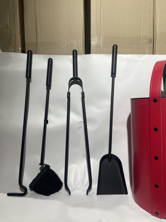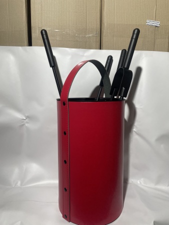 Каминный набор ведро красного цвета с 4 предметами 50.240R гармонично смотрится рядом с камином, удобен и практична в эксплуатации. Набор компактный, поместится в любое небольшое пространство. Сверху эко кожа со специальным защитным покрытием. Материал аксессуаров- сталь. В комплекте 4 предмета: совок, метелка, кочерга, каминные щипцы. Сделано все идеально.