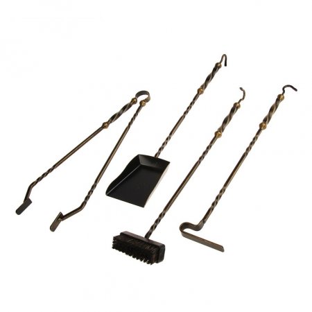 Набор аксессуаров для камина кованый из 4 предметов SafaMaster KN762 выполнен вручную методом горячей ковки. Кованые элементы в виде классических завитушек украшают верх держателя для предметов набора. И еще один расположен перед ножкой. Скрутка есть на держателе, на ручках. Ручки у предметов длинные и очень удобные. В этот каминный набор входит 4 предмета: щипцы, совок, кочерга и щетка. Щетка - самое уязвимое место в любом камином наборе, но тут она сделана на 5+. Надежные крепления, щетина 5 см, которая может удалять золу и пепел даже из труднодоступных углов. Ковка делает металл более прочным, поверхность становится менее зернистой, а металл внутри более гибким и волокнистым. Поэтому такой каминный набор будет служит десятилетия.