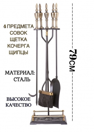Аксессуары для камина: совок, метелка, щипцы, кочерга 01872 Италия (латунь)