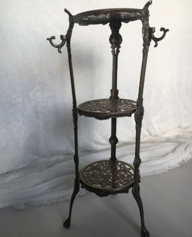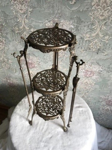 Столик классического дизайна, на нем располагается 3 крючка для удобного расположения аксессуаров. Длинные эргономичные ручки, цвет: античная латунь. Но есть такой же посветлее. Такой столик отлично подойдет к любому классическому/полуклассическому интерьеру и украсит любую каминную зону. Отличный выбор для подарка. Столик с тремя каминными аксессуарами 131975 удобен и практичен в эксплуатации.