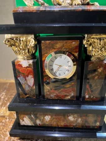 Настольные, каминные часы в гостиную камень / бронза "Георгий Победоносец" яшма 003059