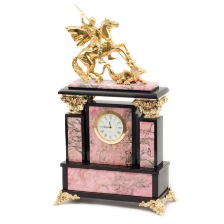 Часы настольные, для камина камень / бронза "Георгий Победоносец" родонит 005033
