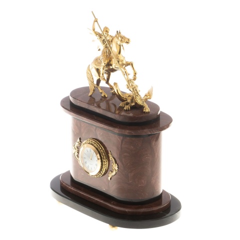 Классические часы из камня в гостиную, для камина «Георгий Победоносец» яшма / бронза 005001