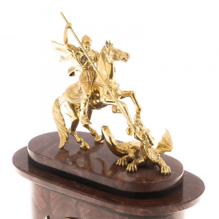 Часы настольные, для камина  камень / бронза "Георгий Победоносец" эвдиалит 006456