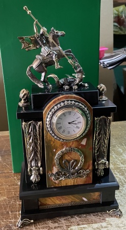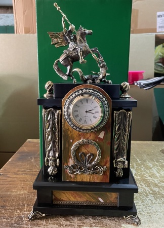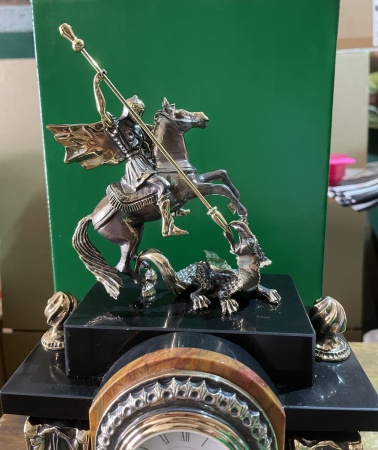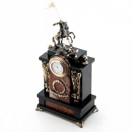 Часы настольные, для камина камень / бронза "Георгий Победоносец" из яшмы выполнены вручную, что придают эксклюзивность каждому изделию.