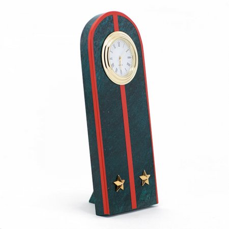 Настольные часы в гостиную "Погон капитан ВВС, ВКС, ВДВ" камень змеевик 003174