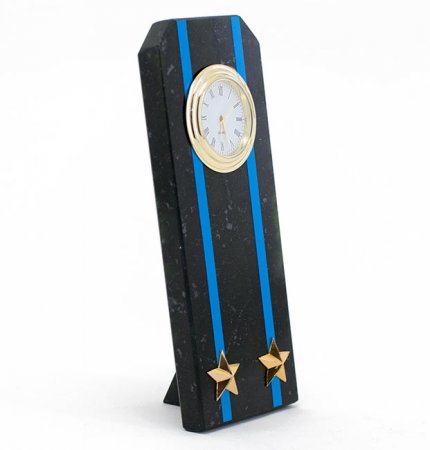 Настольные часы в гостиную "Погон подполковник МВД" камень мрамор 003182