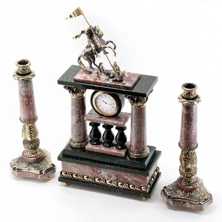 Каминные часы, настольные камень / бронза "Георгий Победоносец" с подсвечниками 005003